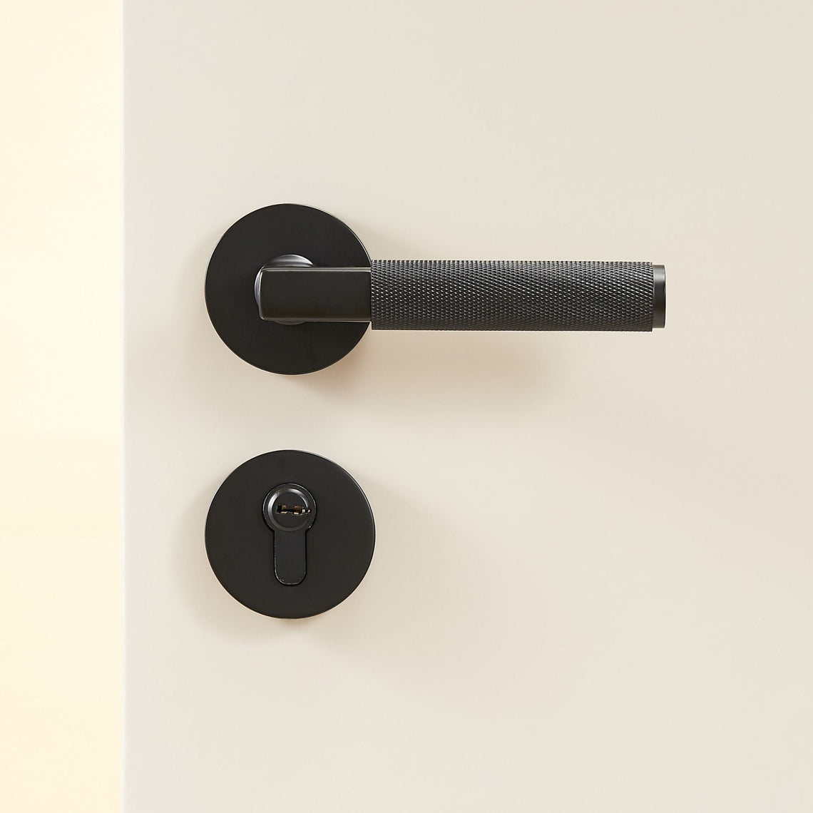 Detta mattsvarta handtag för innerdörrar är tillverkat i solid mässing. Handtagets greppyta har en lättrad struktur som skapar karaktär och bidrar till en modern look av ditt hem. Kombinera gärna med beslag eller knoppar från våra övriga serier för att fullända ditt hem.